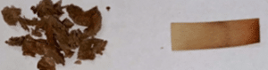 We test for boron for using standard laboratory techniques, comparing known samples of treated and untreated timber against samples retrieved from the house framing. The relative colour change of the samples indicates the presence, and strength of the boron treatment.
